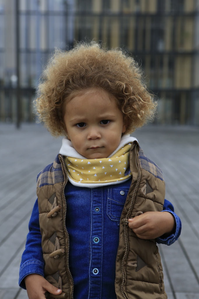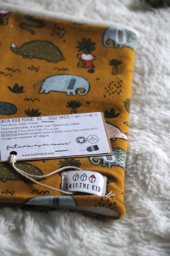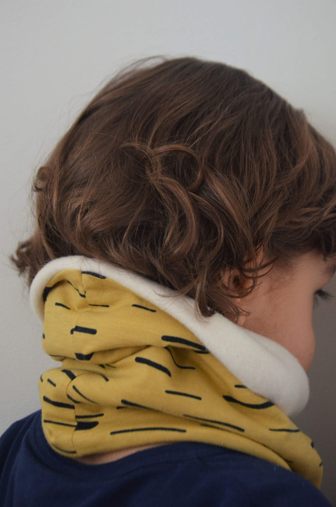 En jersey extensible et polaire biologique épaisse et toute douce, le snood est idéal pour protéger vos enfants du froid sans les gêner dans leurs mouvements !