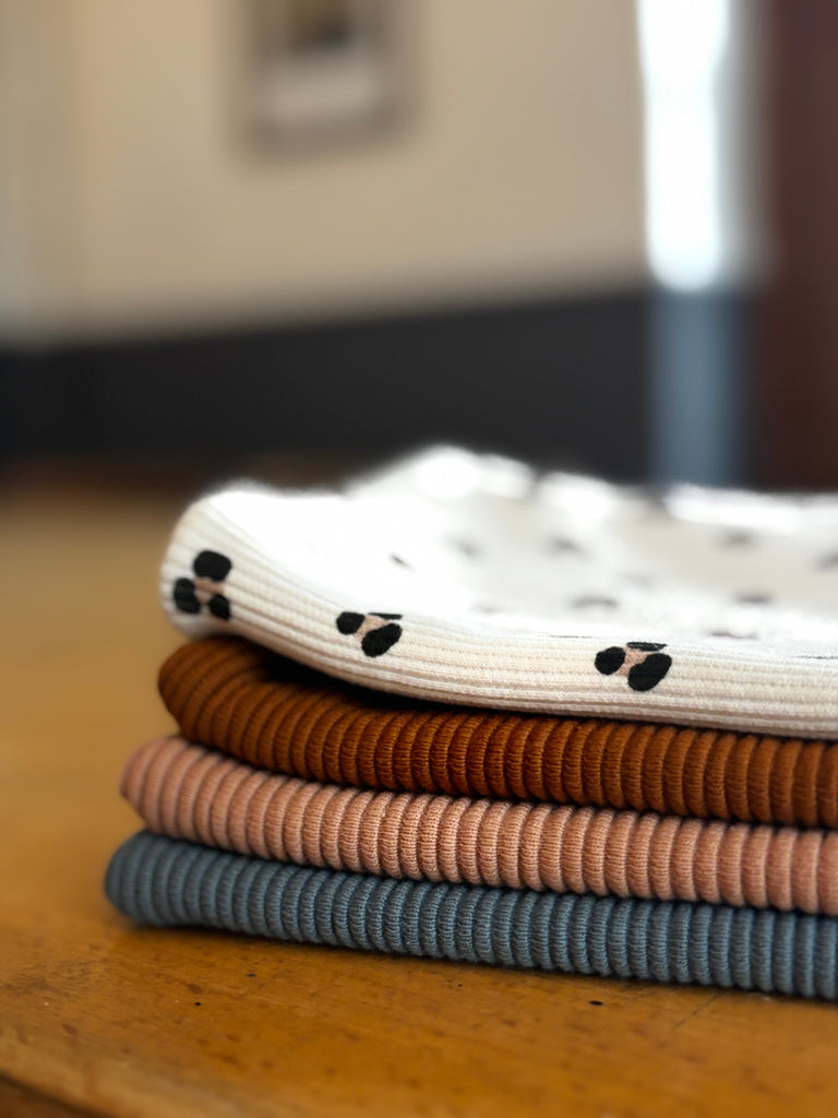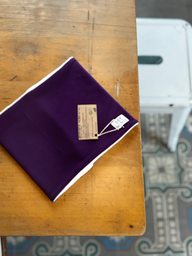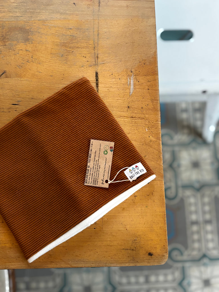 Taille unique bébé et enfant : le snood est proche du cou mais extensible, il peut donc se porter dès que bébé sait tenir seul sa tête (soit environ 5 mois) et jusqu’à très grand (même certains adultes peuvent le passer)
